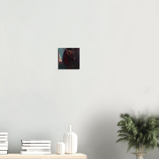 In "The Kiss," Munch employs his characteristic expressionist style to convey the emotional depth and psychological intensity of the moment. The figures are depicted with a raw, almost haunting quality, reflecting Munch's exploration of existential themes such as love, anxiety, and mortality. The background, with its swirling, abstract patterns, further enhances the dreamlike atmosphere of the painting, suggesting the couple's isolation from the external world and immersion in their private emotional experience. This technique not only highlights the intensity of their bond but also underscores the transient and often tumultuous nature of love.