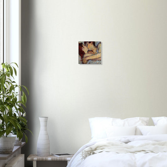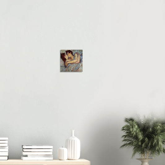 Henri de Toulouse-Lautrec's 1892 painting "In Bed, The Kiss" captures an intimate and tender moment between two lovers, lying in bed and sharing a gentle kiss. The use of soft, muted colors and loose brushstrokes conveys a sense of warmth and closeness, emphasizing the emotional connection between the figures. Toulouse-Lautrec, known for his depictions of Parisian nightlife and the bohemian lifestyle, showcases a more private and personal scene in this work. The painting reflects the artist's keen observation of human relationships and his ability to evoke a deep sense of intimacy and affection.
