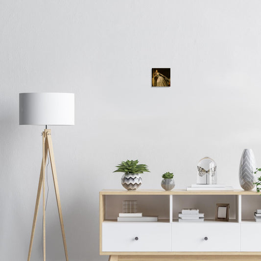 Jean-Honoré Fragonard's 1788 painting "The Stolen Kiss" masterfully captures a moment of secretive passion set against an opulent backdrop. This Rococo masterpiece portrays a young couple in a clandestine embrace, their intimacy heightened by the surrounding luxurious interior. The scene is filled with tension and intrigue, as the woman, dressed in an elaborate gown with shimmering fabric, is pulled into a kiss by her lover who emerges from behind a curtain. Her expression, a mixture of surprise and coy acceptance, and the dynamic composition evoke the thrill and danger of forbidden love. The use of soft, warm lighting and rich, detailed textures add to the painting's sensual and evocative atmosphere.