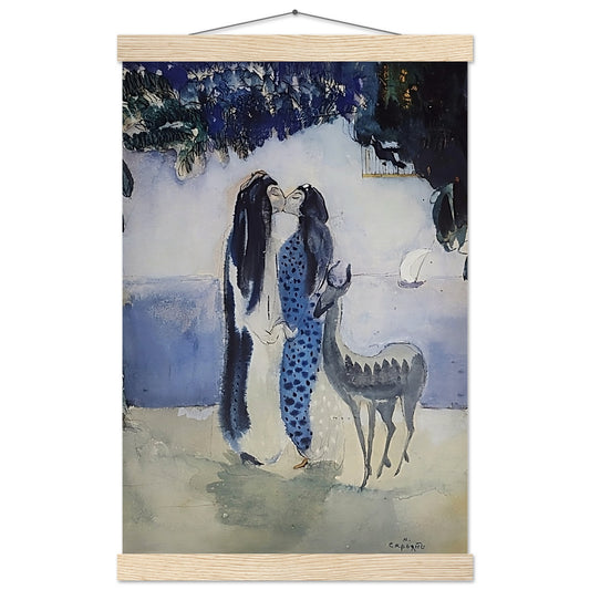 Martiros Sarian's 1906 watercolor "Love" is a vivid symphony of color and emotion, capturing the tender essence of affection through his masterful brushstrokes. The painting, rendered in a delicate yet expressive palette, portrays a scene imbued with a sense of intimacy and warmth. Soft hues intertwine with bold splashes of color, evoking the passionate and gentle nature of love. Sarian's unique ability to blend impressionistic techniques with his deep cultural roots results in a work that resonates with universal sentiments. "Love" invites viewers into a world where emotions are palpable, where the quiet whispers of affection are as vibrant as the bold declarations of passion, and where every stroke of the brush speaks to the timeless and transcendent nature of love.