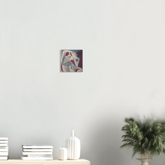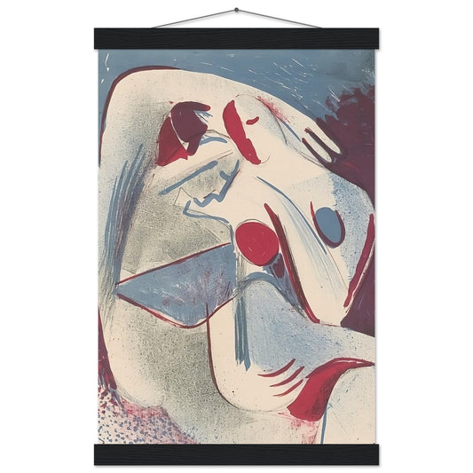 Mikuláš Galanda's 1937 masterpiece "Lovers" encapsulates the essence of modernist abstraction, blending geometric forms with organic fluidity. The composition, rendered in a limited yet striking palette of reds, blues, and whites, portrays two intertwined figures. Their bodies, composed of sweeping curves and bold lines, create a harmonious yet dynamic interplay of shapes and colors. Galanda's use of negative space and textured backgrounds further enhances the sense of intimacy and connection between the figures, drawing the viewer into their tender embrace.