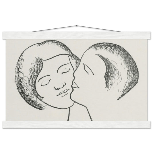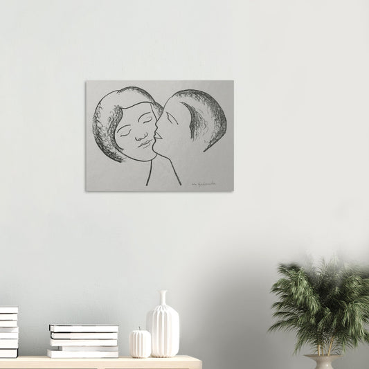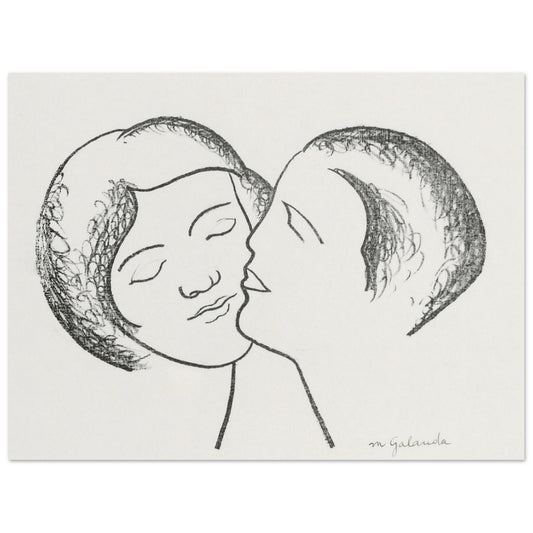 The minimalist approach in "Lovers III" reflects Galanda's mastery of line art, where every stroke carries significant weight and meaning. The intertwined faces, with their closed eyes and serene expressions, convey a feeling of peaceful unity and mutual affection. This artwork exemplifies Galanda's ability to communicate complex emotions through simplicity, making it a timeless representation of love that transcends the constraints of time and culture. "Lovers III" stands as a testament to the power of minimalist art to evoke deep, resonant feelings in its viewers.
